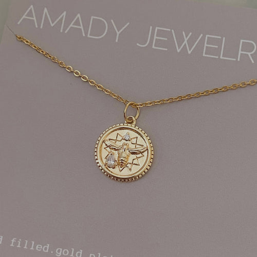 Coin Necklace 18k Gold Filled Gold Plated Honeybee Queen Bee
